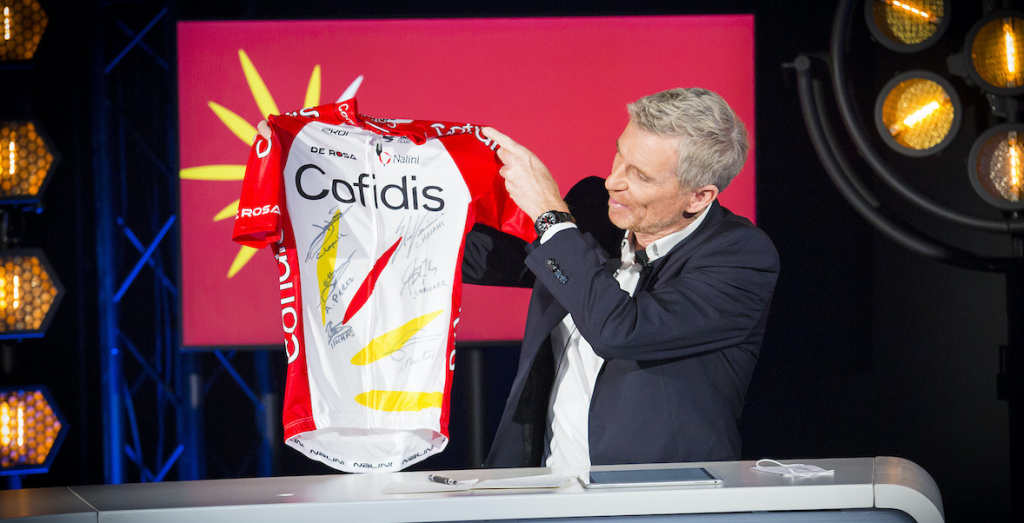Un plateau bien rempli avec les dirigeants, les coureurs et toute la Team COFIDIS, mais aussi un présentateur de taille : Denis Brogniart !